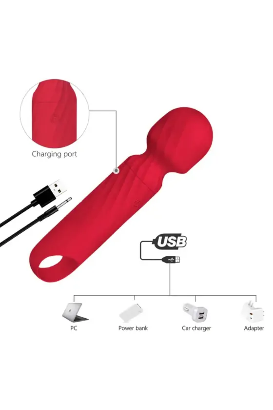 CHERRY WAND VIBRATOR 12 VIBRATION MODES SILICONE USB RED 13,5 CM