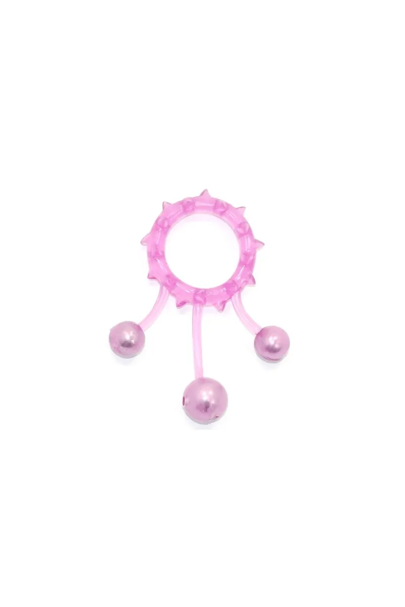 PENIS RING WITH 3 METALLIC BALLS PINK