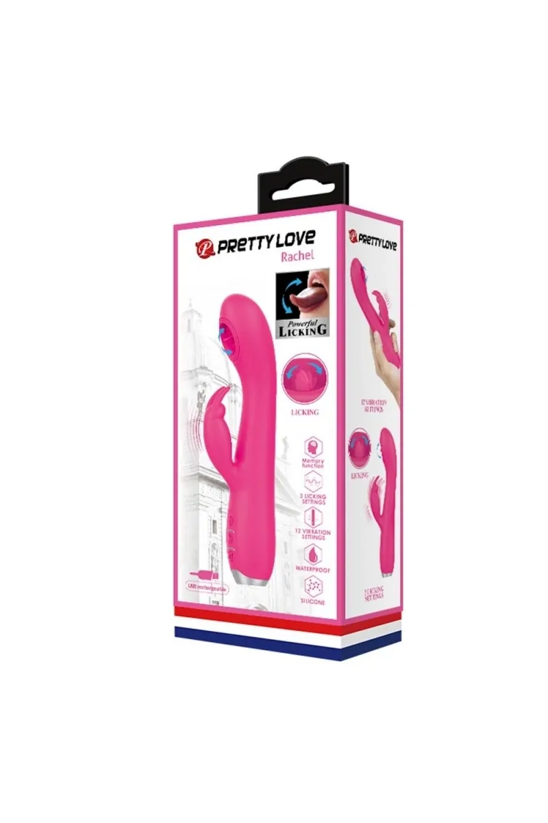VIBRATOR RABBIT RACHEL VIBRATING & LICKING PINK PASSION SILICONE 20CM